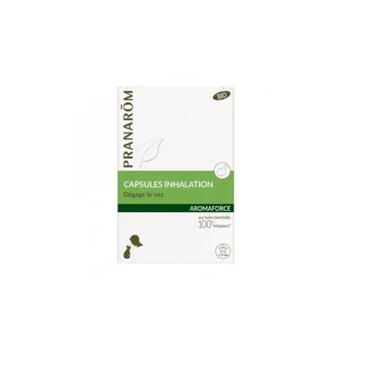 Aromafarce For Inhalation 15 Kapseln enthalten 100% reine und natürliche ätherische Öle, die helfen, die Nase zu entspannen. Die Öle sind Eukalyptus, Ravintsara, Minze, Teebaum und Palmarosa, deren aromatische Moleküle durch Wasserdampf diffundiert werden und die Atmung verbessern.