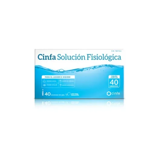 Cinfa physiologische Lösung 40 Stück ist eine sterile Lösung , die zwei direkte Maßnahmen zur Pflege von Augen, Nase und Ohren bietet.