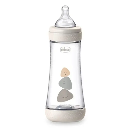 Die Flasche wurde mit einem System entwickelt, das eine intuitive und physiologische Ernährung begünstigt und zu einem natürlichen Saugrhythmus beiträgt. Der flache, symmetrische Silikonsauger begünstigt den richtigen Halt und die Bewegung der Zunge, und das Anti-Kolik-System fördert das Wohlbefinden des Babys während und nach dem Füttern. Schneller Fluss. Geeignet für Babys ab 4 Monaten. *Die Farbe und das Design des Produkts können je nach Verfügbarkeit variieren.