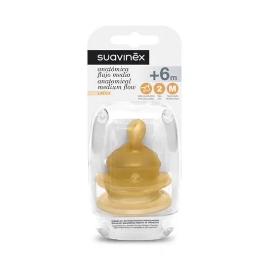 Helfen Sie ihm dabei mit Softvinex® anatomischem Latex Tetina Weithalsöffnung M +6M, sehr gut geeignet, um sich dem Gaumen des Kindes anzupassen und ein Ergebnis zu liefern, das weich und angenehm für die Berührung des Mundes ist.