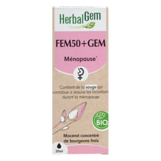 Der Komplex FEM50+GEM wurde mit Extrakten aus Knospen und jungen Trieben formuliert und hilft Frauen über 50, die Wechseljahre zu überwinden. Apfel und Heidelbeere wirken auf die hormonelle Komponente. Weißdorn beruhigt Schlafstörungen. Die Salbei-Urtinktur hilft, nächtliche Schweißausbrüche zu regulieren, und das ätherische Öl der Karotte trägt durch seine hepatische Wirkung zur Verbesserung des Hormonhaushalts bei.