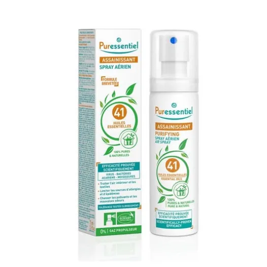 Mit Puressentiel Purifying Air Spray 41 75 ml können Sie unangenehme Gerüche vergessen und reine, frische Luft ohne synthetische Chemikalien genießen. Seine patentierte Formel enthält eine einzigartige Mischung aus 100% reinen und natürlichen ätherischen Ölen.