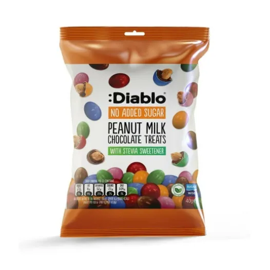 :Diablo Erdnüsse mit Vollmilchschokolade und Stevia-Farben 40g sind mit Vollmilchschokolade überzogene Erdnüsse, die …
