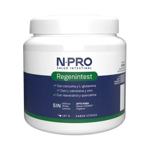 Npro Regenintest 167g ist ein Nahrungsergänzungsmittel, das zur Regeneration der Schleimhäute und Epithelien des Verdauungstrakts beiträgt. Seine Formel aus Aminosäuren und pflanzlichen Extrakten trägt zur Verbesserung der gastrointestinalen Gesundheit bei. Geschmack nach Blaubeere.