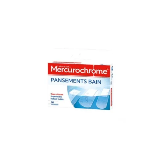 Die Mercurochrome Bain Pflaster schützen die Haut und die Wunde vor Wasser und Bakterien. Sie sind wasserfest, atmungsaktiv, ultraflexibel und dünn, was sie besonders gut für den Einsatz im Wasser eignet. Die Packung enthält 16 Einheiten in 3 verschiedenen Größen.