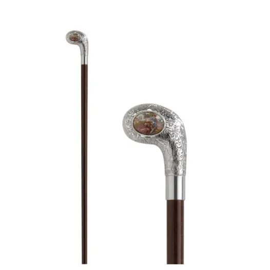 Eleganter dekorativer Silberstock, der Menschen mit eingeschränkter Mobilität hilft. Dekorativer runder Silbergriff mi…