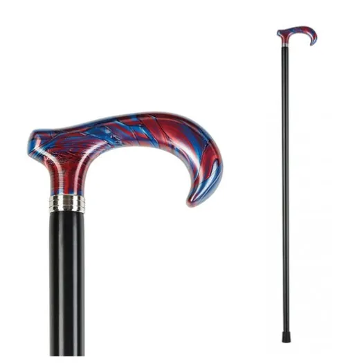 Stock mit Aluminiumschaft, der Menschen mit eingeschränkter Mobilität hilft. Verstellbares Design mit verziertem Acrylgriff, schwarzer Stange und einer etwa Ø20mm großen Spitze.