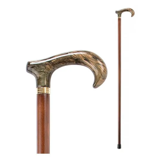 Stock mit Aluminiumstiel, der Personen mit eingeschränkter Mobilität hilft. Verstellbares Design mit dekorativem Acrylgriff, Holzimitatstiel und einer Kontermutter von ca. Ø20mm.