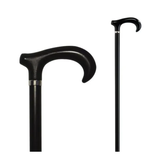 Stock mit Aluminiumschaft, der Menschen mit eingeschränkter Mobilität hilft. Verstellbares Format mit glattem Griff, schwarzem Stock und einer Konusform von ca. Ø20mm.