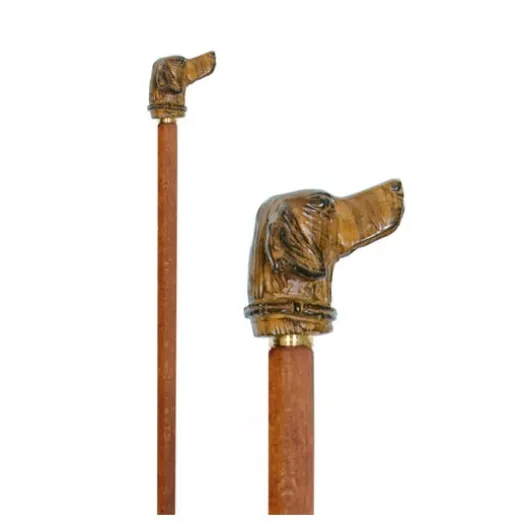 Eleganter Gehstock, der Menschen mit eingeschränkter Mobilität hilft. Format aus Olivenholz in verschiedenen Größen, Griff in Tierform, sehr leicht und mit einer Spitze von etwa Ø19mm.