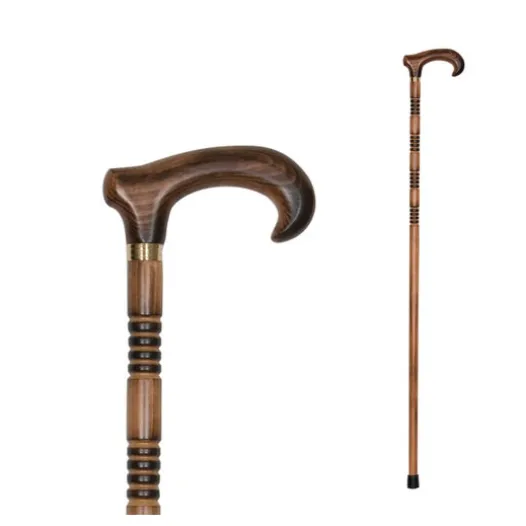 Stock mit Holzgriff, der Menschen mit eingeschränkter Mobilität hilft. Verstellbares Format mit Buchenholzgriff, gedre…