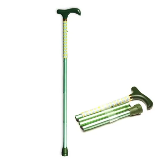 Faltbarer Stock aus perlsatiniertem Aluminium mit Derbygriff. Er sorgt für Stabilität und Gleichgewicht für ältere Menschen oder Personen mit eingeschränkter Mobilität. Es ist ein elegantes und komfortables Design aus langlebigen Materialien. Geeignet für Benutzer bis zu 110 kg.