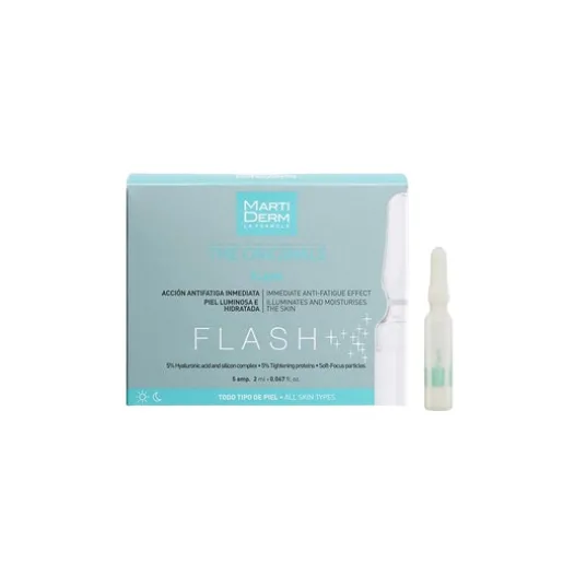 Martiderm® Anti-Aging-Ampullen mit Flash-Effekt beseitigen Ermüdungserscheinungen, spenden intensiv Feuchtigkeit und stärken die Gesichtshaut. Sie enthalten Hyaluronsäure und Silizium, straffende Proteine pflanzlichen Ursprungs, die Rauheit und Falten im Gesicht reduzieren und einen elastischen Film auf der Haut bilden, der regenerierend auf die Haut wirkt. Diese Ampullen beseitigen ermüdungsbedingte Hautunreinheiten und Unebenheiten und schaffen einen strahlenden, frischen Teint. Für alle Hauttypen geeignet.