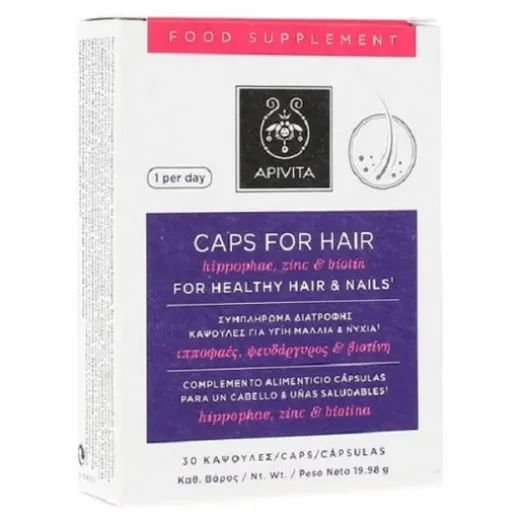 Apivita Hairloss 30caps: Das Nahrungsergänzungsmittel hilft, das Haar zu stärken und sein gesundes Aussehen zu erhalten. Sie helfen dem Haar, dank ihrer Bestandteile stark und gesund zu sein: