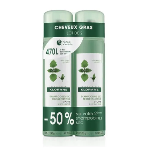 Klorane Brennnessel-Trockenshampoo 2x150ml ist ein Sprühshampoo, das auf trockenem Haar angewendet wird und nicht ausgespült werden muss.