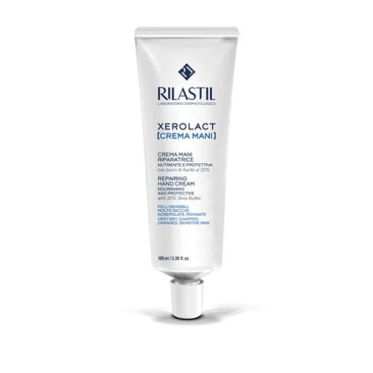 Rilastil Xerolact Repairing Hand Cream 100ml ist eine reparierende Creme, die für die tägliche Pflege empfindlicher Handhaut entwickelt wurde. Sie enthält Sheabutter und Schizandra Chinensis-Extrakt, Selen, Beta-Carotin, Vitamin C, E und B6, die die Kollagenproduktion aktivieren und die Hydratation aufrechterhalten.