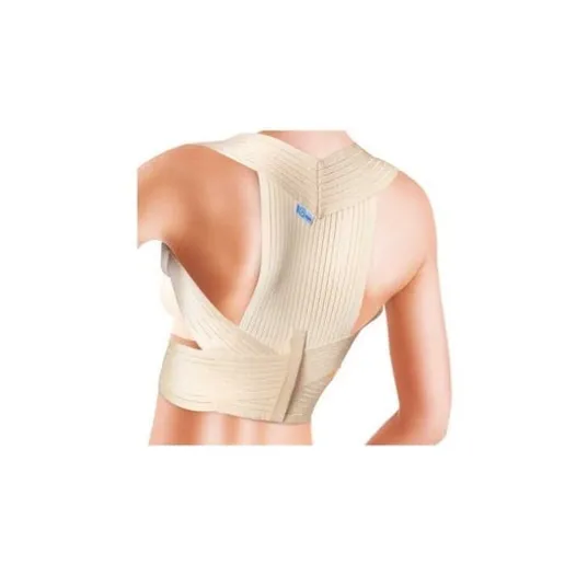 Prim Comfort Back Support 335 S 1 St. Orthese, die die Retropulsion in den Schultern trainiert und den Rücken aufrecht hält und so hilft, die Thoraxkrümmung zu korrigieren. mit paravertebralem Band für eine kontrollierte Passform. mit abnehmbaren anatomischen Polstern im Achselbereich. atmungsaktives, elastisches Monofilament-Gewebe. latexfrei.