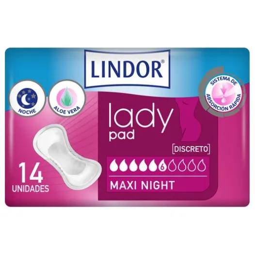 Lindor Lady Pad Maxi Night 5 Drops 14 Stk die Pads sind saugfähige Einlagen für kleine Mengen von Urinverlusten.