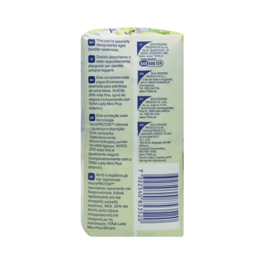 Tena Lady Mini Plus sind Harninkontinenzunterlagen für leichten Urinverlust mit Längenzuwachs im Vergleich zu Tena Lady Mini.