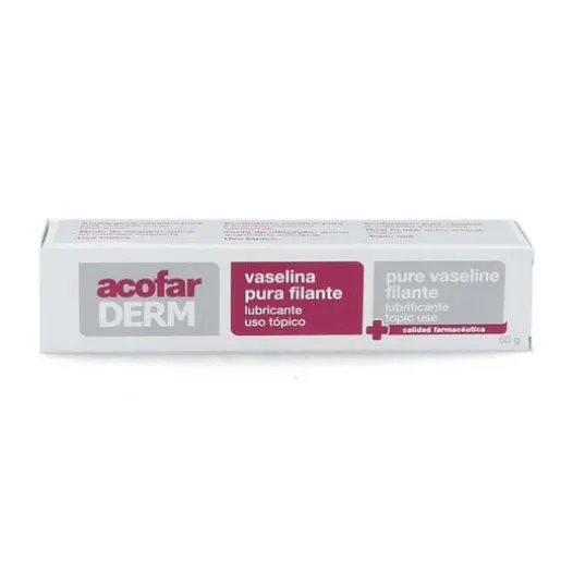 Acofarderms reines Filament Vaseline ist als Universalschmiermittel indiziert. Es hat hydrophobe Eigenschaften, die verhindern, dass es sich im Wasser auflöst, da es dichter als Wasser ist, und kann ebenso wenig von der Haut aufgenommen werden.Vaseline im Medizinschrank zu Hause oder am Arbeitsplatz zu haben, ist immer eine gute Empfehlung, da es ein einfach zu handhabendes Produkt ist, nichts Schädliches für unsere Gesundheit, und es ist sehr effektiv bei der Linderung kleinerer Beschwerden und Reizbarkeit der Haut, die mit Sorgfalt feucht wird.