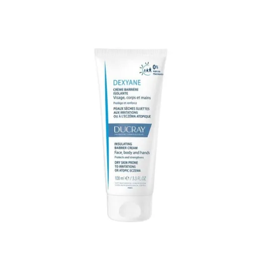 Ducray Dexyane Isolierende Barrierecreme 100ml ist eine Creme, die zur Behandlung von empfindlicher Haut im Gesicht, am Körper oder auch an den Händen dient, die unter ständigen Reizungen leidet. Sie hilft, die Haut von schädlichen Substanzen zu isolieren, die atopische Läsionen verursachen können, sei es durch allergische Stoffe, Reibung oder ungünstige Substanzen wie Reinigungsmittel.