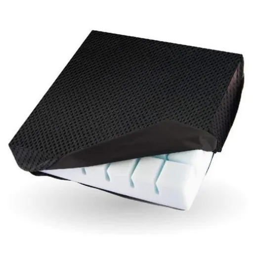 Viskoelastisches Anti-Dekubitus-Kissen mit Steißbeinentlastung zur Verringerung des Dekubitusrisikos und mit atmungsaktivem, wasserdichtem und elastischem Bezug. Er ist für Rollstühle oder Sessel geeignet und bietet dem Patienten somit mehr Komfort.