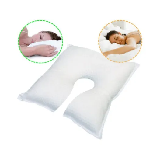 Hufeisenförmiges Kissen mit gestepptem Polyesterbezug und silikonisierter Hohlfaserfüllung, die sich angenehm anfühlt und flexibel ist. Darüber hinaus entlastet es die Druckstelle beim Liegen und ermöglicht eine zufriedenstellende Erholung.
