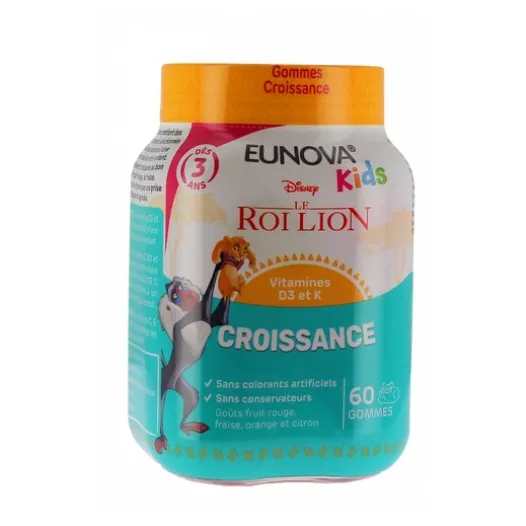 Eunova Kids Der König der Löwen Wachstum 60 Gummis ist ein Nahrungsergänzungsmittel, das entwickelt wurde, um die Entwicklung von Kindern ab drei Jahren zu unterstützen. Es wird in Form von schmackhaften und ansprechenden Gummibärchen angeboten, was die Einnahme erleichtert. Dieses Produkt zeichnet sich durch seine Formulierung ohne künstliche Farbstoffe und Konservierungsstoffe aus und fördert somit eine natürlichere und gesündere Ernährung.