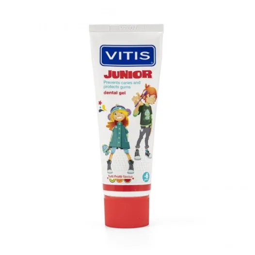 Vitis Junior Zahnpasta Gel Tutti Frutti Geschmack 75ml ist eine Zahnpasta für Kinder, mit der sie lernen, dass Mundhygiene für die Gesundheit unerlässlich ist.