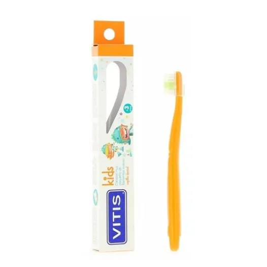 Vitis Kids Toothbrush +3 Jahre ist eine Zahnbürste für Kinder, die leicht zu handhaben ist und eine weiche und angenehme Textur hat, die ihre Zähne reinigt, ohne ihr Zahnfleisch zu beschädigen.