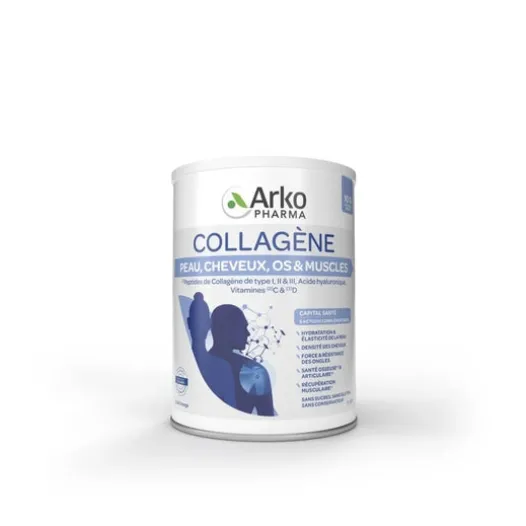 Arkopharma Kollagen Haut, Haar, Knochen und Muskeln 260g ist ein Nahrungsergänzungsmittel auf Basis von Kollagen Typ I, II und III, hydrolysiert in Form von niedermolekularen Peptiden, das eine hohe Bioverfügbarkeit bietet.
