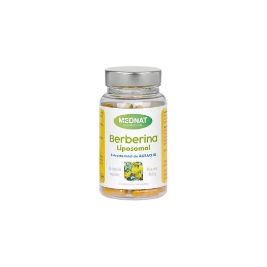 Mednat Berberina Liposomal 60caps Nahrungsergänzungsmittel in Kapselform, hergestellt aus Berberitzenextrakten, die reich an Berberin sind, das eine antimikrobielle und blutdrucksenkende Wirkung auf den Organismus hat, hilft, die Symptome von Durchfall zu regulieren und die Menge an Glukose und schlechtem Cholesterin im Blut zu reduzieren.
