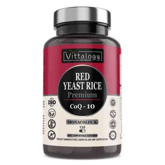 Vittalogy Red Yeast Rice Premium 120caps ist ein natürliches, veganes Nahrungsergänzungsmittel, das hilft, den Cholesterinspiegel im Blut zu senken.