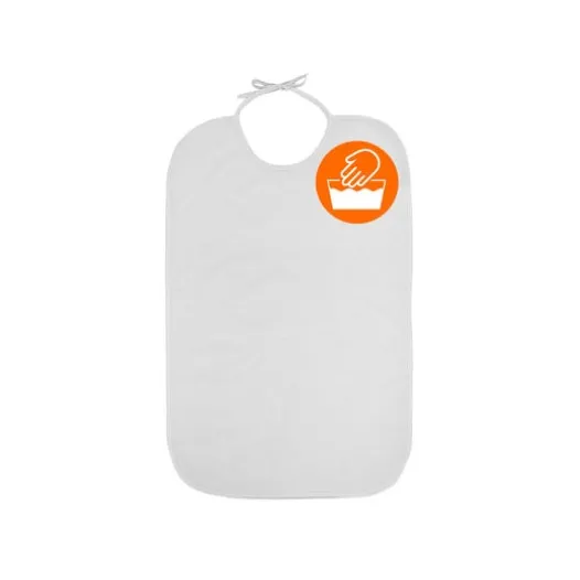 Waschbares Lätzchen mit verstellbarem Riemenverschluss, das die Ernährung von Menschen mit eingeschränkter Mobilität ohne Verschmutzung ermöglicht. Es hat eine tiefe Tasche zum Auffangen von Essensresten und Flüssigkeiten. Außerdem ist es flexibel und lässt sich für den einfachen Transport leicht zusammenfalten. Außerdem schützt er die Kleidung vor Flecken, die durch Verschütten oder Spritzer verursacht werden, und erleichtert die persönliche Hygiene. Es besteht aus vollständig wasserdichtem Baumwollfrottee und atmungsaktivem PU-Frottee, ohne äußere Nähte. Geeignet für Hand- oder Maschinenwäsche bis zu 90º. Das Produkt ist zu 100% wiederverwendbar. Hergestellt in Spanien. Erhältlich in weiß.