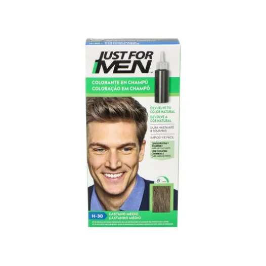 Just For Men Medium Kastanienfarb-Shampoo wirkt auf graues Haar und entfernt es zu 100%, ohne die natürliche Farbe des Haares zu verändern. Es ist die Nummer 1 der Welt in männlicher Färbung.