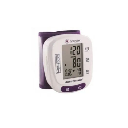 Das elektronische Blutdruckmessgerät Spengler SPG 340P Autotensio ermöglicht Ihnen die Messung und Überwachung Ihrer Herzfrequenz (Puls) und Ihres Blutdrucks (Blutdruck) bequem von zu Hause aus. Das kleine, leichte und leise Gerät ist einfach zu bedienen und schaltet sich automatisch ab. Der LCD-Bildschirm und das Anzeigesystem (Datum, Uhrzeit, Herzfrequenz, systolischer und diastolischer Druck) erleichtern das Ablesen der Ergebnisse, wobei bis zu 120 Messungen gespeichert werden können.