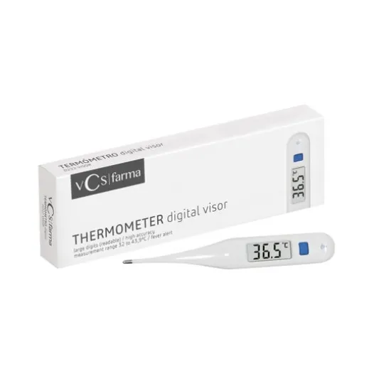 Das digitale Thermometer-Visier von VCS ist ein VCS-Produkt, das in jedem Erste-Hilfe-Koffer unverzichtbar ist. Dieses digitale Thermometer ist sehr einfach zu bedienen und bietet alle Möglichkeiten der Messung: oral, axial und rektal. Die Hauptmerkmale der digitalen Thermometeranzeige von VCS sind die schnelle und genaue Temperaturmessung und der Speicher der letzten Messung, der es ermöglicht, die Entwicklung der Körpertemperatur zu bewältigen. Zusätzlich verfügt es über ein akustisches Warnsignal, das anzeigt, wenn die Temperatur normal ist oder Sie Fieber haben. Das Thermometer schaltet sich nach Gebrauch automatisch aus, was die Akkulaufzeit verlängert.