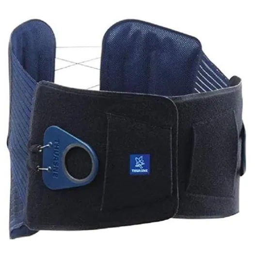 Verstellbare Lendenwirbelstütze, empfohlen bei akuten Kreuzschmerzen und mittelschweren bis schweren Kreuzschmerzen. Besonders geeignet für Berufe mit hoher Aktivität, in denen Kreuzschmerzen häufig auftreten können. Das Verstell- und Kompressionssystem ist einfach und schnell. Darüber hinaus bietet sie dank ihres elastischen Gewebes und ihres anatomischen Designs mit Hüft- und Bauchwölbung mehr Stabilität.