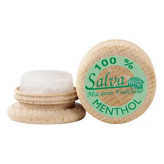 Cooper Salva Macaron Fraîcheur Menthol 7g ist ein Naturprodukt aus reinem Menthol, das dank seiner gefäßverengenden Wirkung Kopfschmerzen und Migräne lindert. Der Mentholblock ist in einem Holzhalter mit Schraubverschluss befestigt: der Macaron.