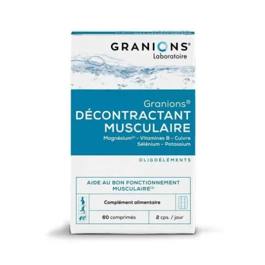 Granions Décontractant Musculaire 60 Comprimés ist ein Nahrungsergänzungsmittel, das mit Spurenelementen und Vitaminen formuliert wurde, um eine gesunde Muskelfunktion zu unterstützen. Es ist an den Prozessen der Muskelkontraktion und -entspannung beteiligt. Selen und Kupfer sind natürliche Antioxidantien, die dazu beitragen, die Zellen vor oxidativem Stress zu schützen. Nahrungsergänzungsmittel sollten niemals eine gesunde, abwechslungsreiche und ausgewogene Ernährung und eine gesunde Lebensweise ersetzen.