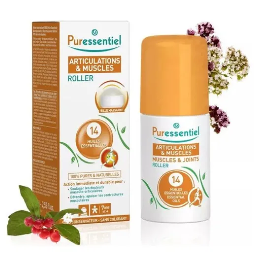 Puressentiel Roller Gelenke und Muskeln 14 Ätherische Öle 75ml ist ein Roll-on-Lösung, die Muskelschmerzen und Schmerzen lindert.