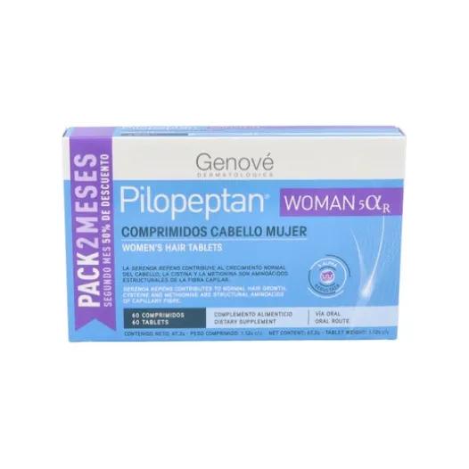 Pilopeptan Woman 5AlfaR 60comp ist ein Nahrungsergänzungsmittel, das hilft, androgenen Haarausfall bei Frauen zu reduzieren.