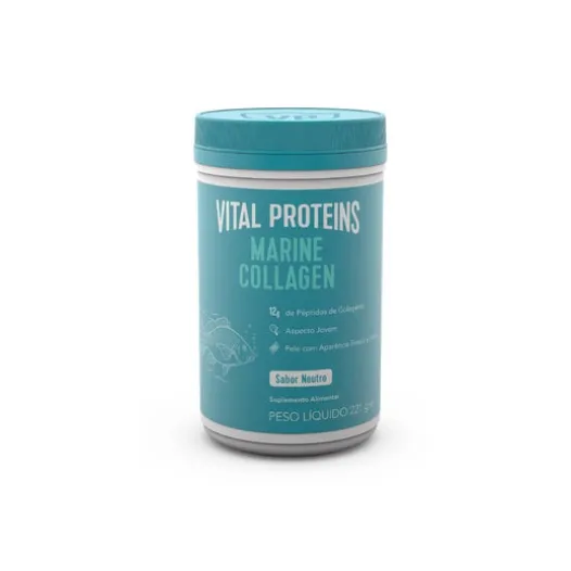Vital Proteins Marine Collagen Flavourless Collagen Peptides 221g ist ein Nahrungsergänzungsmittel in Form eines löslichen Pulvers, das pro Dosis 12 Gramm hydrolysiertes Kollagen liefert.