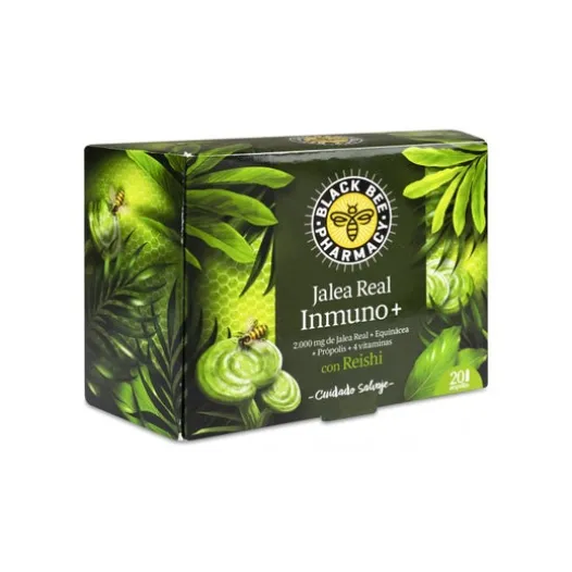Black Bee Inmuno 2x20Fläschchen ist ein Nahrungsergänzungsmittel auf der Basis von Gelée Royale, Propolis, Reishi und Vitaminen, das zur Stärkung der Abwehrkräfte des Körpers beiträgt. Enthält 2 Schachteln mit je 20 Fläschchen.