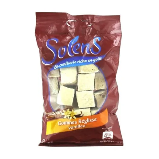 Durch die Zugabe von Gummiarabikum zu Lakritze und dem delikaten Aroma der Vanille erhalten wir die weiche Textur und den duftenden Geschmack der Solens Vanille-Lakritz-Kaugummis. Ohne Farbstoffe. INFORMATIONSolens Vanilla Liquorice Chewing Gums sind Lakritz-Kaugummis mit Vanillegeschmack. Lakritze, die in der Antike zur Klärung der Stimme verwendet wurde, transportiert uns durch subtile Aromen.