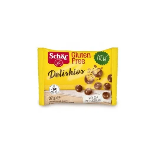 Milchschokolade-Kugeln ohne Gluten. Ihre Füllung aus knusprigem Keks macht sie zu einer köstlichen Art, Schokolade zu essen, die für Zöliakiebetroffene geeignet ist.