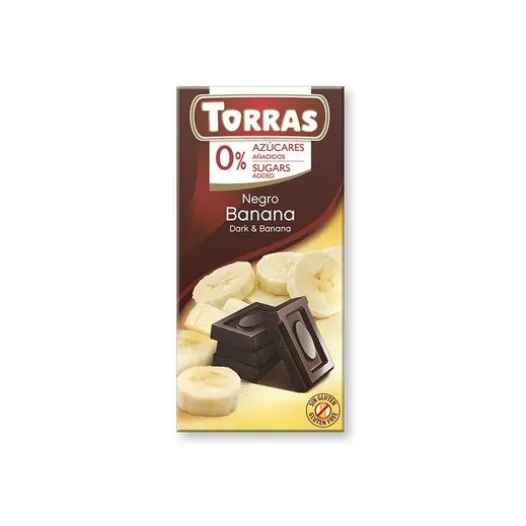 Dunkle Schokoladentafel mit gefriergetrockneter Banane und natürlichem Vanillearoma. Enthält kein Gluten. Erleichtert den Genuss eines energiereichen und köstlichen Desserts. Geeignet, um alleine, als Snack oder zwischendurch verzehrt zu werden. Für die ganze Familie geeignet.