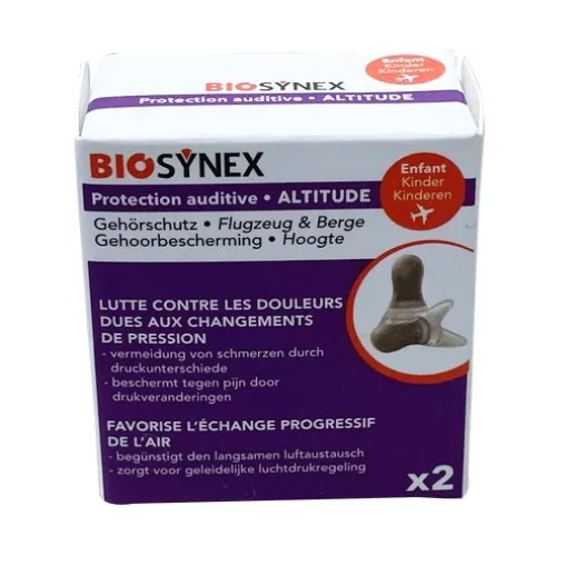 Gerät, das Schmerzen aufgrund von Druckveränderungen bekämpft und den allmählichen Luftaustausch fördert. Die Schutzvorrichtungen sind waschbar und wiederverwendbar.