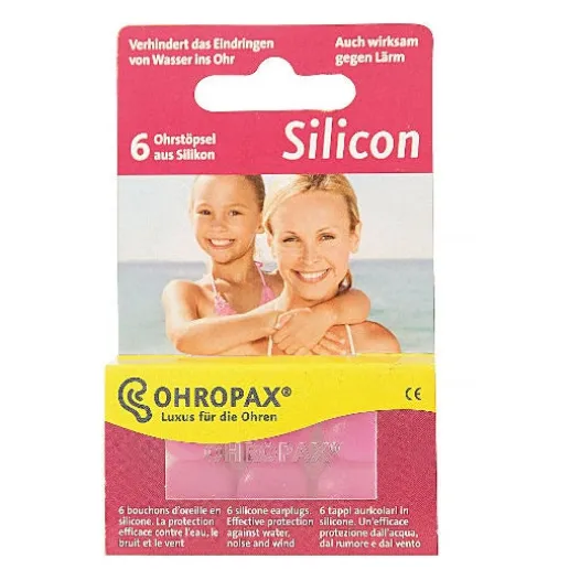 Ohropax Silikon Ohrstöpsel 6 Stück sind Silikonstöpsel, die verwendet werden, um das Eindringen von Wasser im Schwimmbad oder am Strand zu verhindern und auch um Lärm zu vermeiden.
