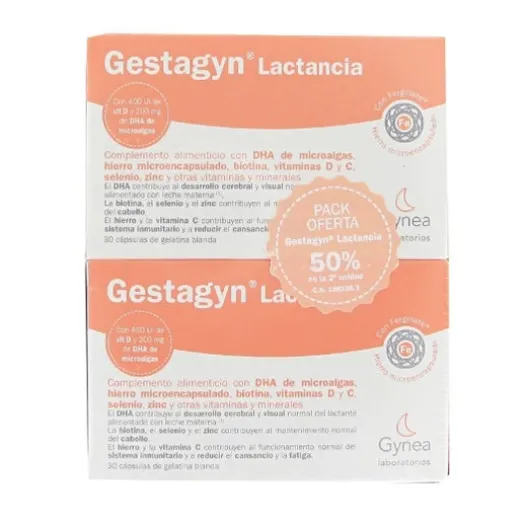 Gestagyn Lactation Pack Duo 2 X 30 Caps ist ein Nahrungsergänzungsmittel, das speziell für das Laktationsstadium entwickelt wurde und reich an Mikroalgen, Folsäure, Jod, Beta-Carotin und anderen Vitaminen und Mineralien für das Laktationsstadium ist.